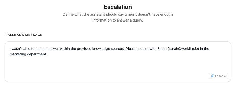 Decide what the assistant should say when it doesn’t have enough information. Set clear fallback messages or handoffs.