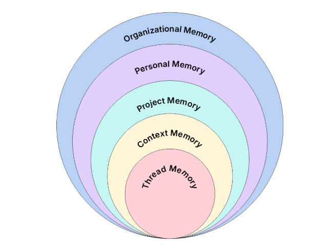 Effective teams need shared context, not scattered information. WorkLLM’s memory architecture mirrors your organization’s structure — capturing thread-level details, project decisions, team knowledge, and company-wide context in interconnected layers. Your team stays aligned with the right information flowing naturally to every conversation and decision.
